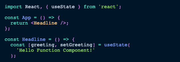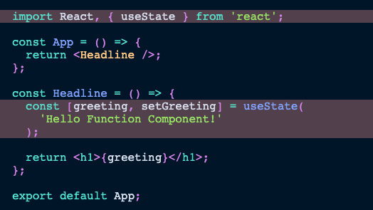 React Hooks made it possible to use state (and side-effects) in Function Components. Finally we can create a React Function Component with state! Let's say we moved all logic to our other Function Component and don't pass any props to it: