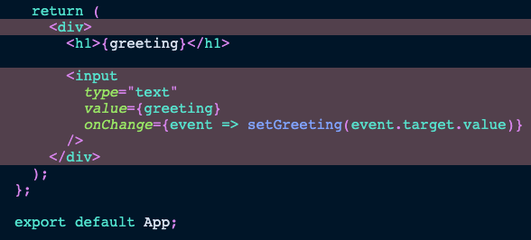 Let's add an input field to change the state with the setGreeting() function: