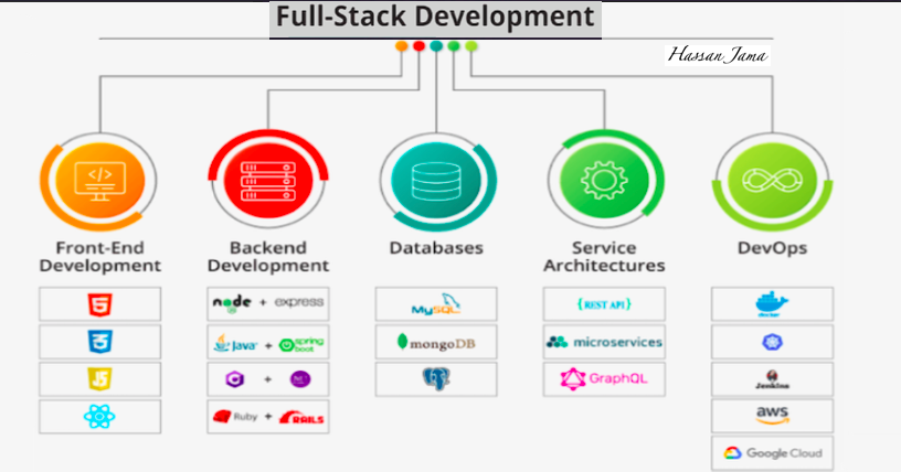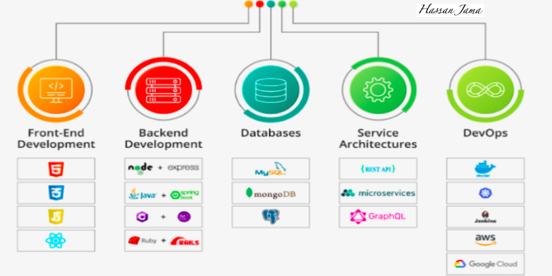 Most tech stacks are a combination of front-end and back-end technologies like React.js ,HTML/CSS & Javascript (user interface), Java, Node.js & Express,Python (programming language), SQL/MySQ/MongoDB/Firebase/NoSQL(database), and Apache (server).